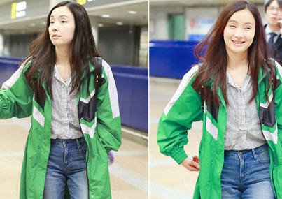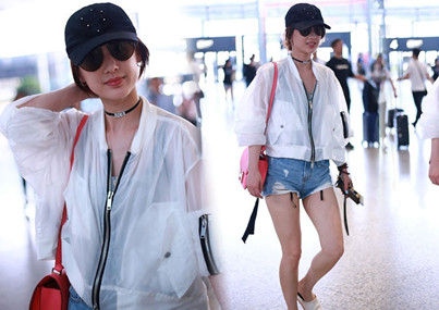 日前,黄圣依现身机场,上身透视防晒服配下身的牛仔短裤大秀长腿,墨镜遮面酷劲十足,搭配清新又不失性感,摆“脖子痛”pose低头浅笑。